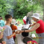Во время похода дети трудились, выполняя порученное каждому дело: заготовка дров для костра, установка палаток, разжигание костра, помощь в приготовлении пищи, поднос воды. Был организован и их активный отдых: ориентация в лесном массиве в дневное и вечернее время. Большую помощь в этом организаторам похода оказал директор музея Вернадского Кулначёв В.М.. Свободное время дети проводили с пользой для души и для здоровья, общаясь с живописным миром окружающей их природы. Купание в реке, игра в футбол, пение православных песен и рассказы у костра – всё это быстро снимало усталость. И, конечно же, молитва к Богу, с которой начинался и заканчивался каждый проведённый в походе день, а также любое дело. С Божией помощью все участники похода были довольны и счастливы тем, что смогли вынести нелёгкий, но очень полезный путь, не испугались трудностей. Кроме того, они узнали много интересного о своём родном крае, побывали в тех местах, которые были для них неизвестны. Погружаясь в красоту природы, каждый участник похода видел мир живым, настоящим, чувствовал себя неотделимой его частью и получал огромную радость от увиденного и пережитого. Возможно, в будущем это повлияет на развитие каждого из них, научит ценить и беречь красоту созданного Богом мира.